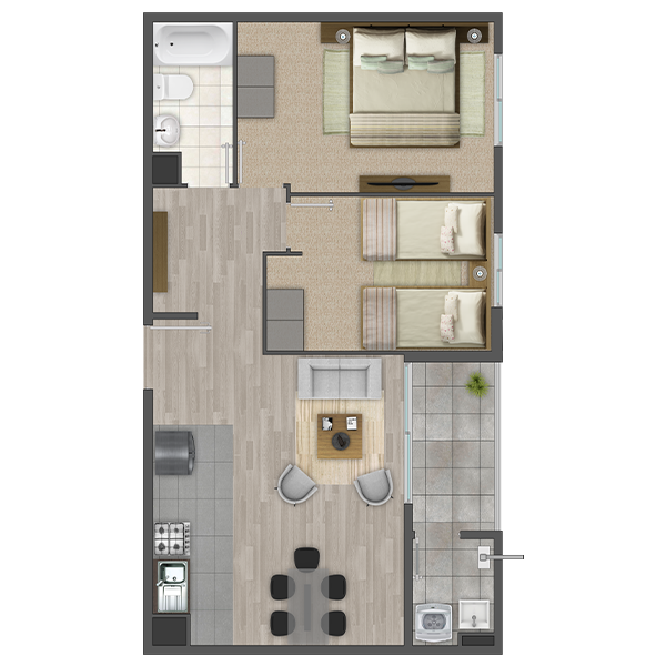1, 2 y 3 dorms