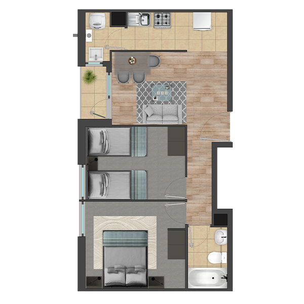 Condominio Puertas de Lantaño, un proyecto ubicado en un sector residencial y consolidado con conectividad al centro de Chillán. Cuenta con 2 edificios de 8 pisos con departamentos de 1, 2 y 3 dormitorios. Equipado con juegos infantiles, equipamiento deportivo, sala multiuso y locales comerciales. Todos los departamentos consideran certificación MINVU y tendrán calificación energética tipo C, garantizando así su eficiencia en el uso de energía.