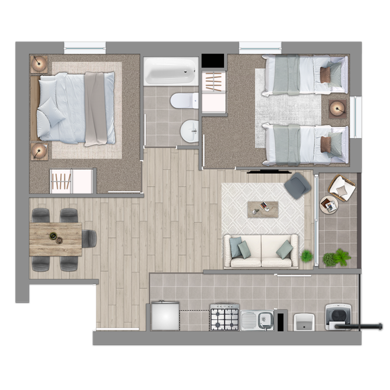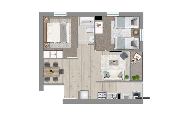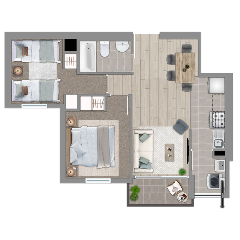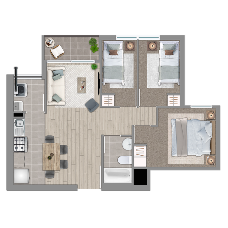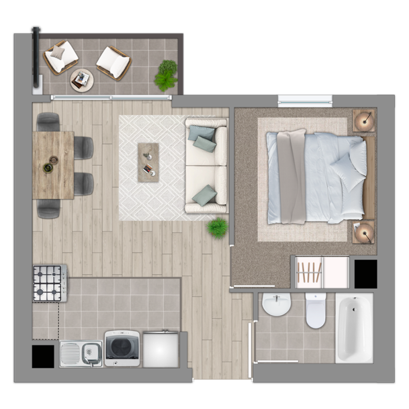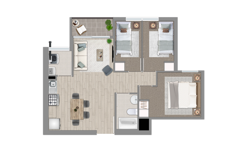 El proyecto consiste en un edificio habitacional de 15 pisos, más un volumen de equipamiento comercial, con un total de 255 departamentos, salas multiuso y equipamiento deportivo y juegos de alto estándar. Considera 4 tipos de departamentos, desde 1 dormitorio y hasta 3 dormitorios y 1 baño, estos últimos para sectores vulnerables, además de departamentos para personas con movilidad reducida. El proyecto genera un sector central de esparcimiento y áreas verdes que propician la integración de las familias.
